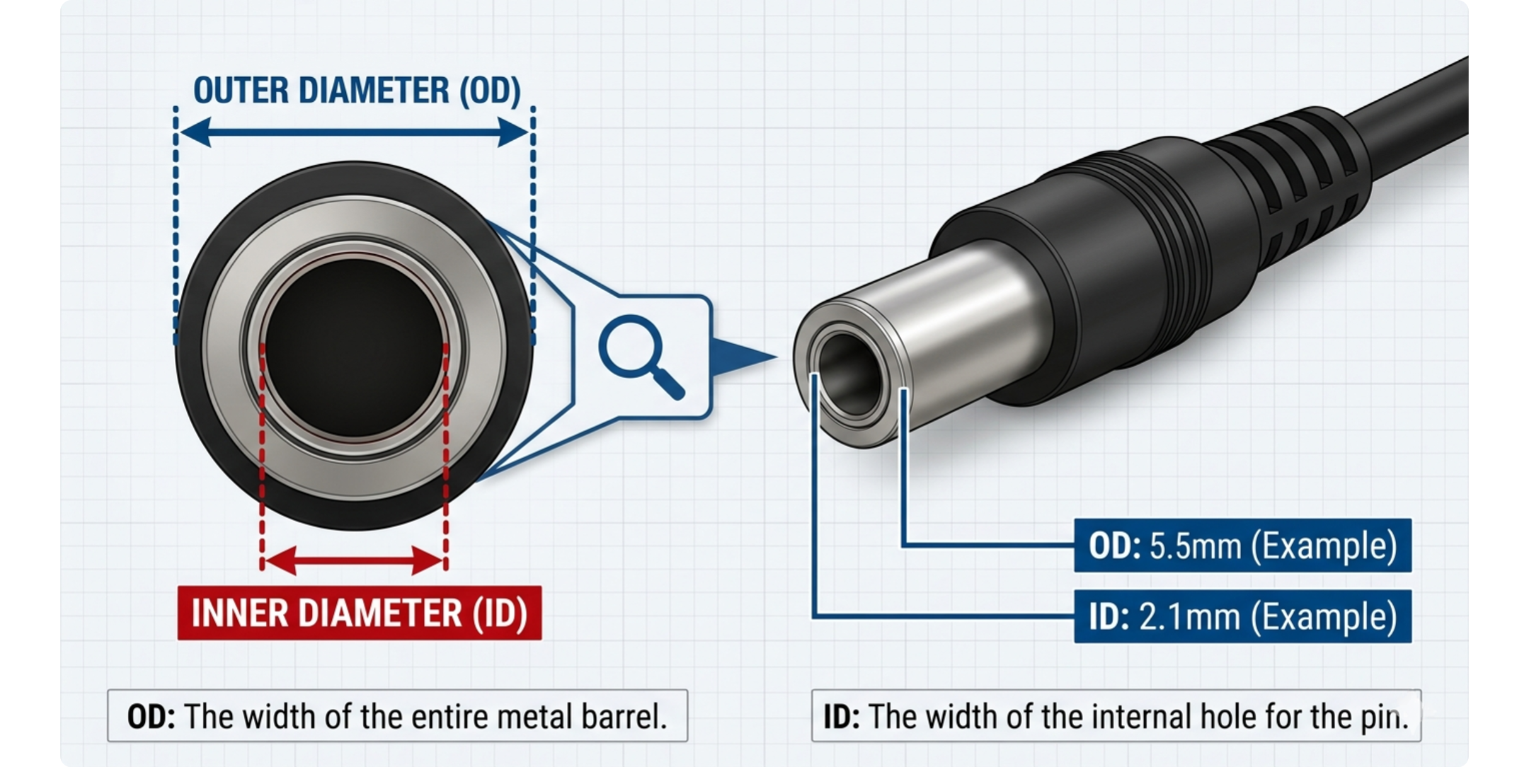 DC tips may look similar, but they come in dozens of precise sizes measured in millimeters (e.g., 5.5mm x 2.5mm).