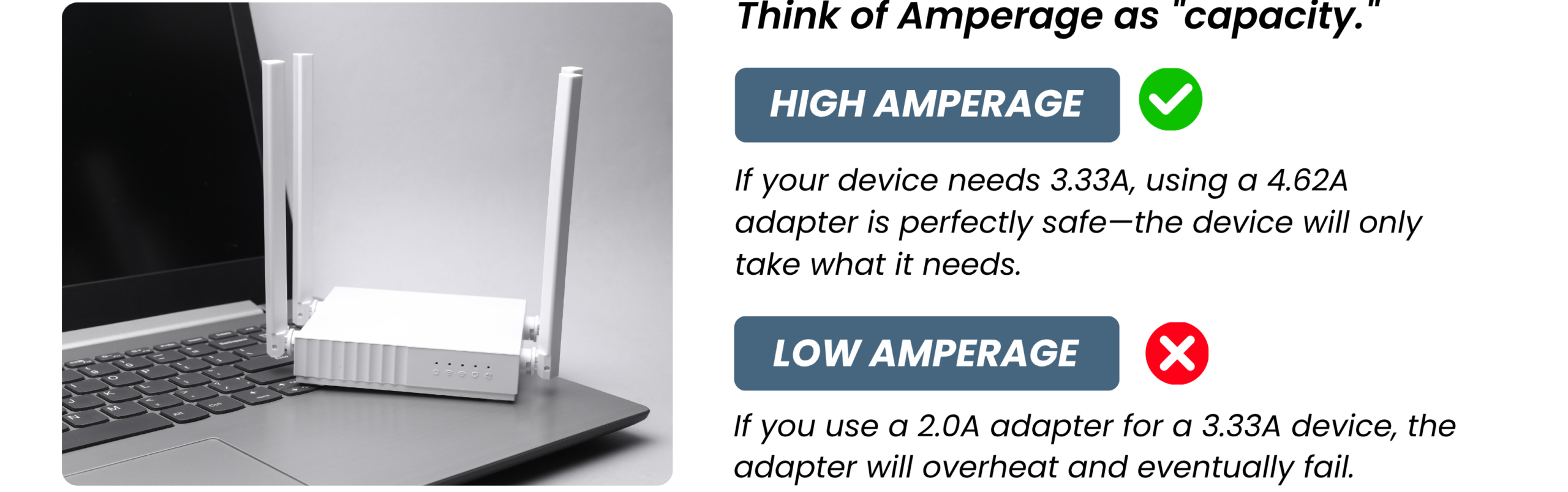 The Rule: The Voltage (V) of the new adapter must exactly match the voltage required by your device.