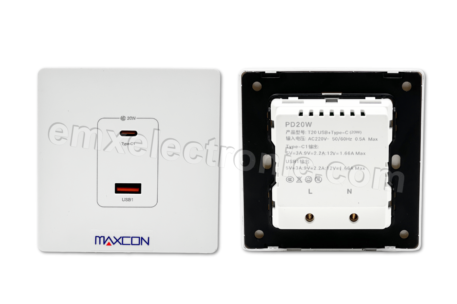 USB + TYPE C 20W 3A FAST CHARGES W/PLASTIC FACE PLATE
