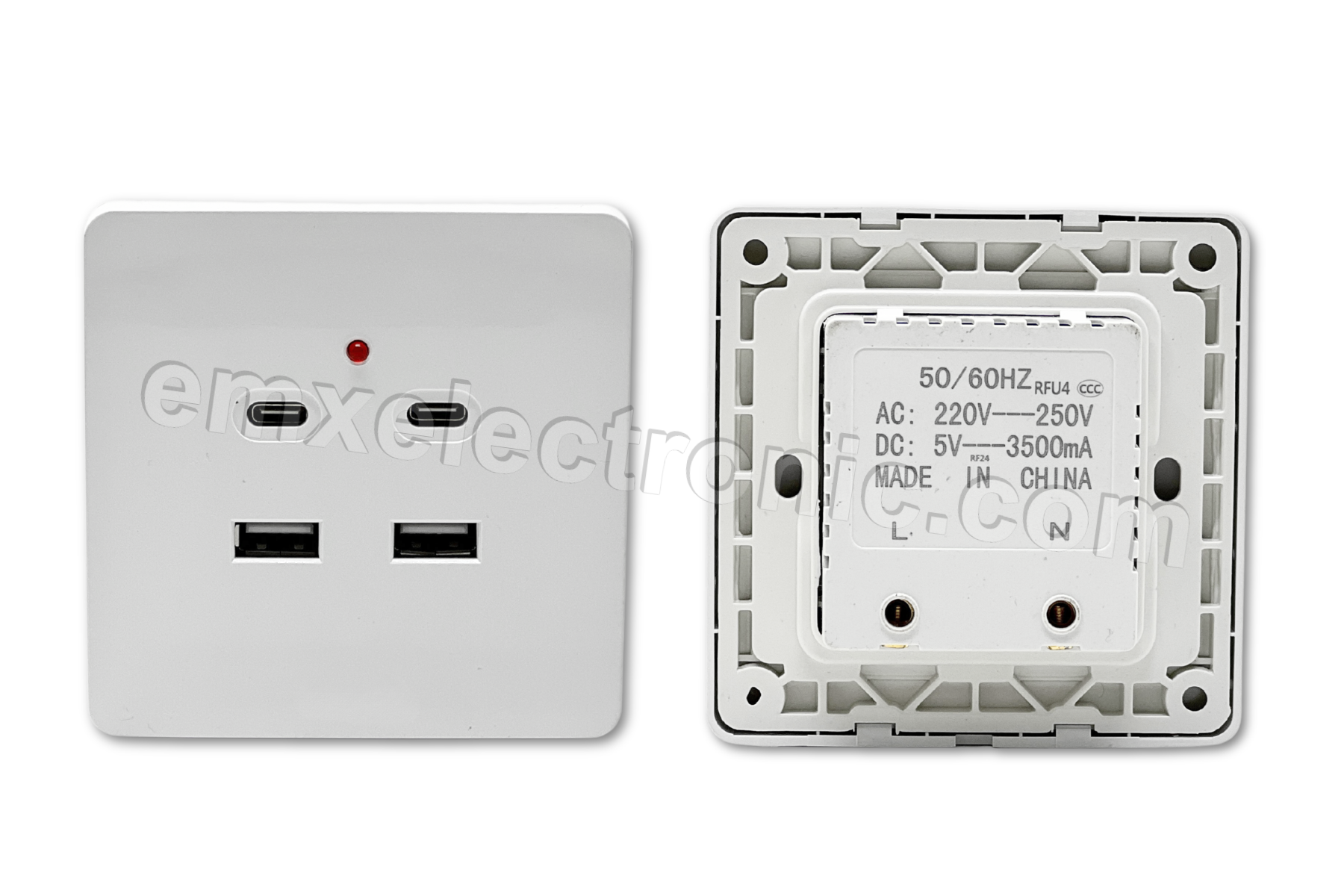 2XUSB + 2XTYPE C 5V 3.5A CHARGES W/PLASTIC FACE PLATE